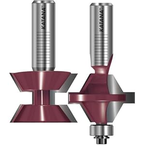 Product Description : From the ManufacturerAdd an attractive and durable edge to your cabinet doors and shelf edges. For use with plywood panels, MDF panels or shelves from 1/2-Inch to 1-Inch thick. Matched 2-piece bit set is two flute carbide tipped. Simply center the male cutter on the stock and make the cut. Next match up the female cutter with the center point of the first cut. Finish by gluing together the two pieces and flush trim the edges, if necessary. The 60-Degree bits feature a tongue and groove for a larger glue surface area and easier alignment of edge banding. Recommended for use in a table mounted router. 1/2-Inch shank.