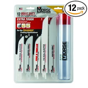 Product Description : From the ManufacturerM K Morse bimetal reciprocating saw blades are designed for the longest blade life possible. These extra-tough, professional quality blades are available for a wide variety of uses in wood, metal, plastics, fiberglass, plaster and other common building materials. Includes 4 Master Cobalt metal cutting blades 6"/18TPI, 2 Master Cobalt metal cutting blades 9"/14TPI, two Real McRipper demolition blades 6"/10TPI, two Real McRipper demolition blades 9"/10TPI and two Fire and Rescue blades 6"/14TPI. Product Description : • Includes (4) 6" 18 TPI Master Colbalt metal cutting; (2) 9" 14 TPI Master Cobalt metal cutting; (2) 6" 10 TPI Real McRipper Demolition; (2) 9" 10 TPI Real McRipper Demolition; (2) 6" 14 TPI Fire & Rescue blades, and a storage case• Heavy-Duty• 12-Piece - Bi-Metal