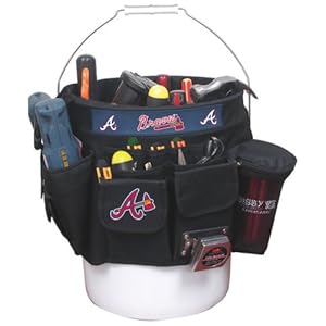 Product Description : From the ManufacturerOrganize and carry all of your tools with the MLB Team Bucket Liner by Fantasia. The commercial grade Team Bucket Liner is made of tough 600D polyester and fits securely over any standard 5-gallon bucket. The bucket liner includes 26 inside and outside pockets, sewn-in logos, 1 zippered mesh pocket, 2 hook-and-loop flap pockets, hammer holder, power tool holster with drill bit organizer, electric tape holder and a measuring tape holder.